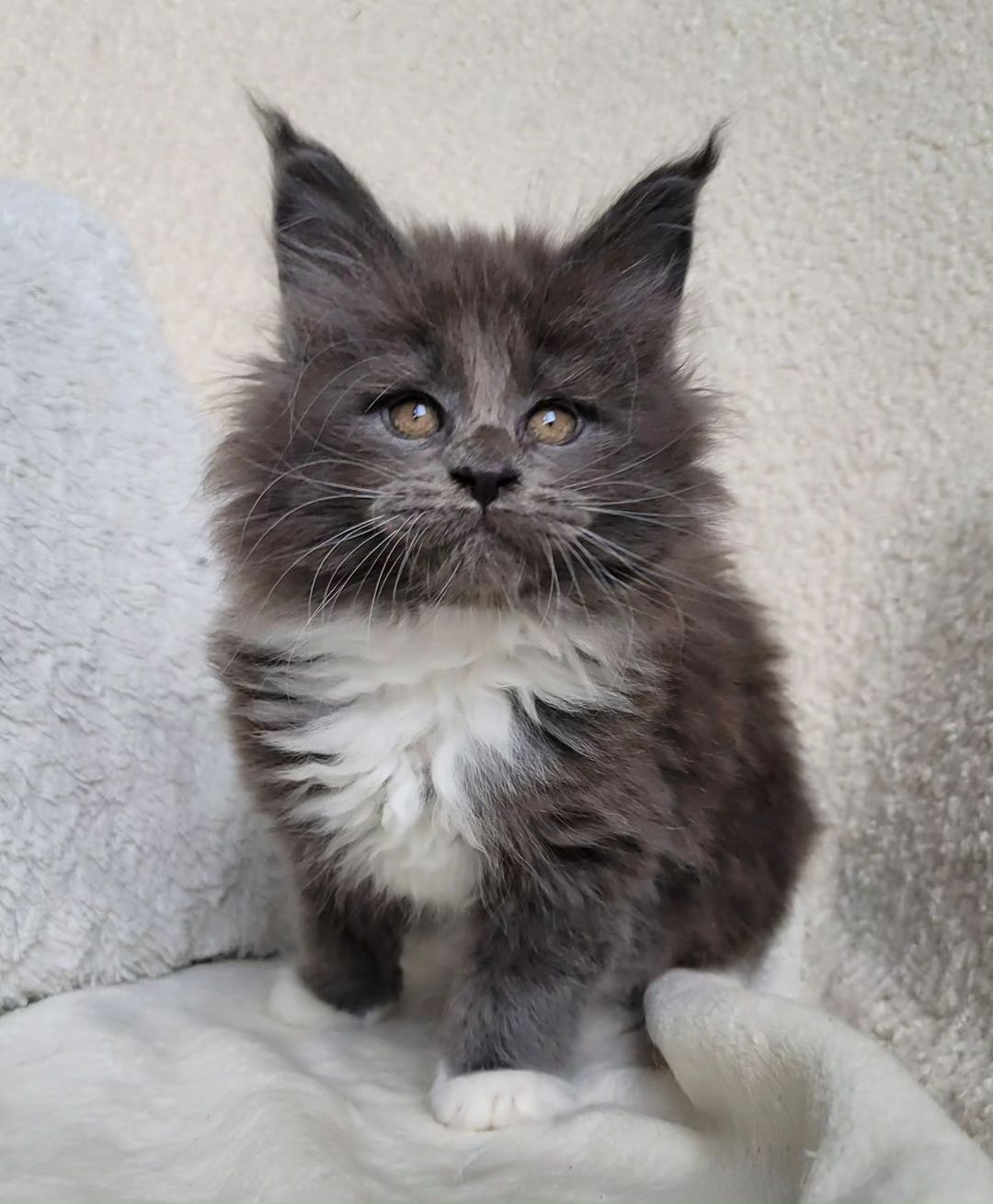 We currently have a variety of standard and rare colored Maine coon kittens for sale and available for adoption, which are home-raised and well-socialized with people and other animals. All kittens come with vaccinations, de-worming, and litter training, and are registered with the International Cat Association (TICA). We are happy to assist potential adopters in finding the perfect kitten for their family.